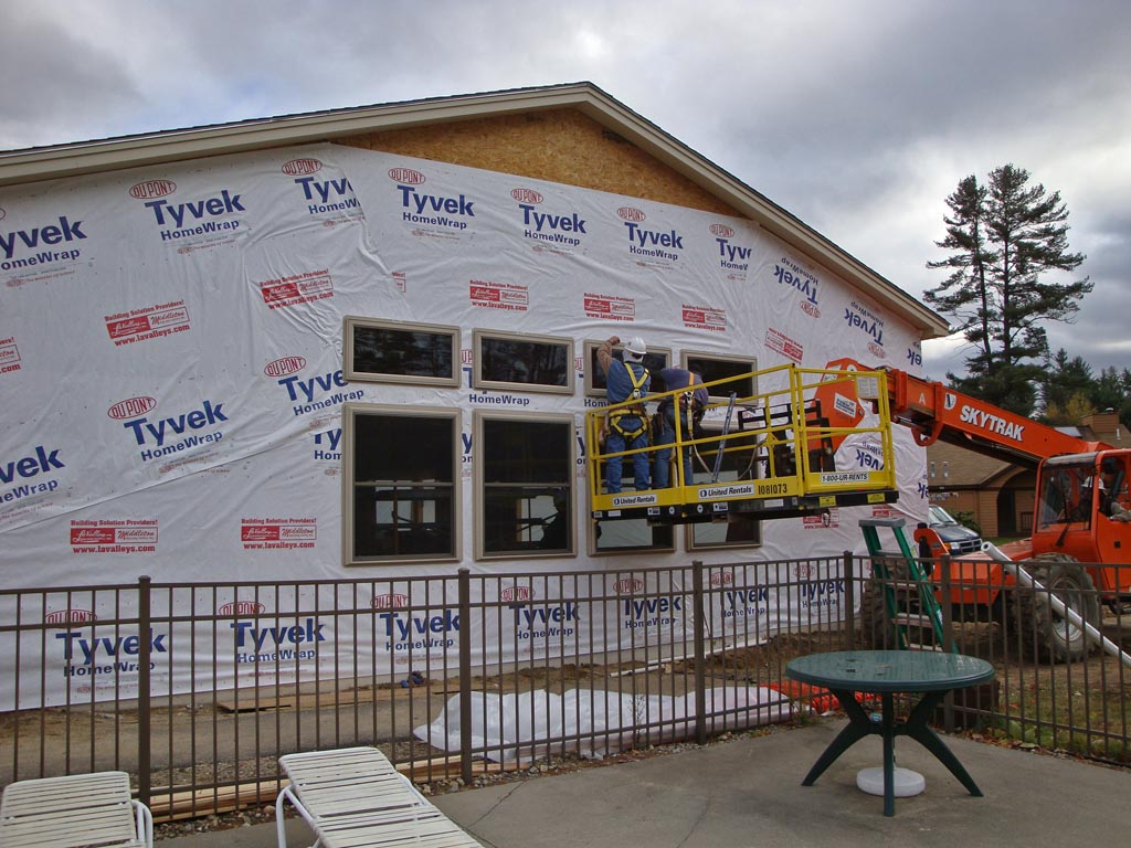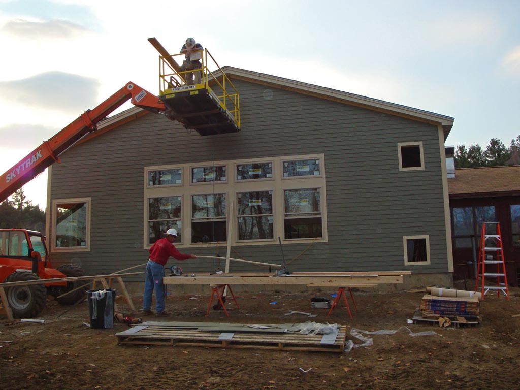 Photos from Wes showing the exterior siding complete and more interior work.