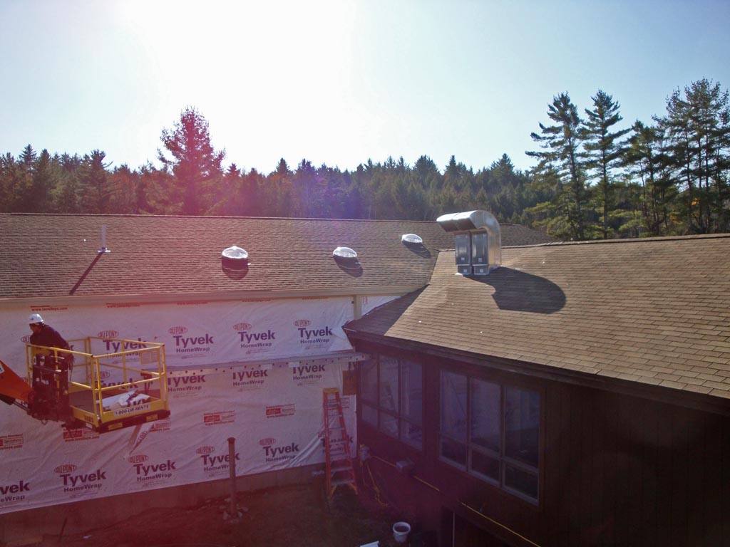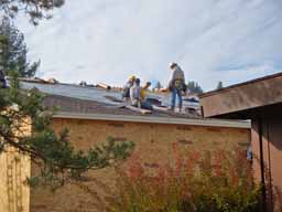 Photos from Wes showing the shingles going on the roof of the new cabana.